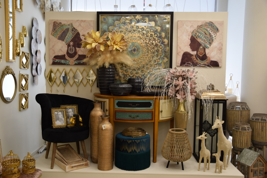 Μεγάλη ποικιλία από διακοσμητικά, βάζα, κρεμάστρες, κηροπήγια, είδη γάμου. Εικόνες, ρολόγια, πίνακες, κορνίζες και άλμπουμ. Εντυπωσιακοί καθρέφτες, έπιπλα, οικιακά και προϊόντα εποχής, αλλά και φωτιστικά.