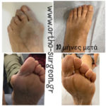 Η Διαδερμική Χειρουργική του Ποδιού που εφαρμόζει η ομάδα μας τα τελευταία πέντε χρόνια, προσφέρει λύση στις παραμορφώσεις του ποδιού, που αντιμετωπίζει όχι μόνο το πρόβλημα αλλά και όλες τις αρνητικές πτυχές της παλαιάς ανοικτής χειρουργικής τεχνικής. Η επέμβαση πλέον γίνεται με αναισθησία τοπικά στο πόδι, με νοσηλεία πέντε ωρών και ο ασθενής εξέρχεται βαδίζοντας με ειδικό μετεγχειρητικό παπούτσι.