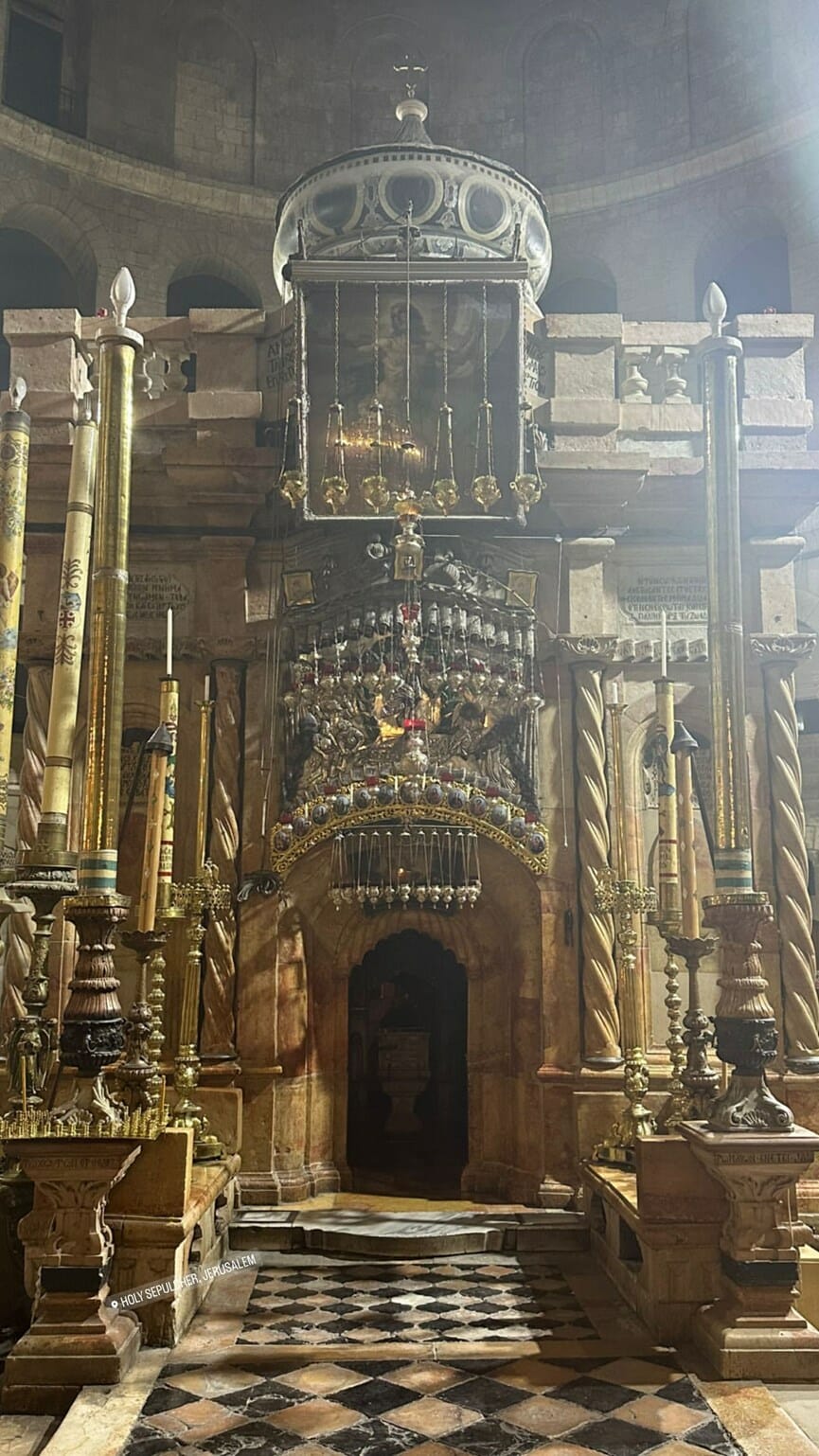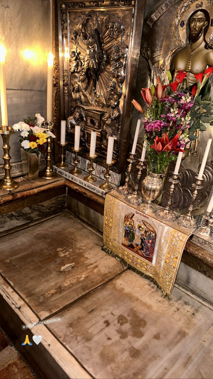«Μέσα στον Πανάγιο Τάφο, εδώ που αναστήθηκε ο Χριστός μας», είπε ο Οικονομόπουλος στους ακολούθους του, μέσω βίντεο στα stories.
