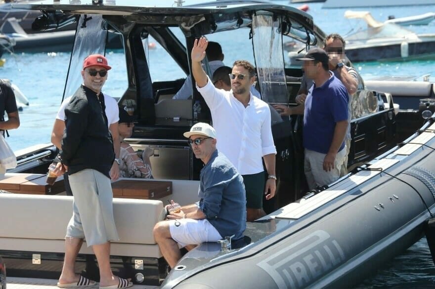 Και μάλιστα με σκάφος. Ο καλλιτέχνης και η παρέα του έκαναν τη… βόλτα τους στη θάλασσα με φουσκωτό.