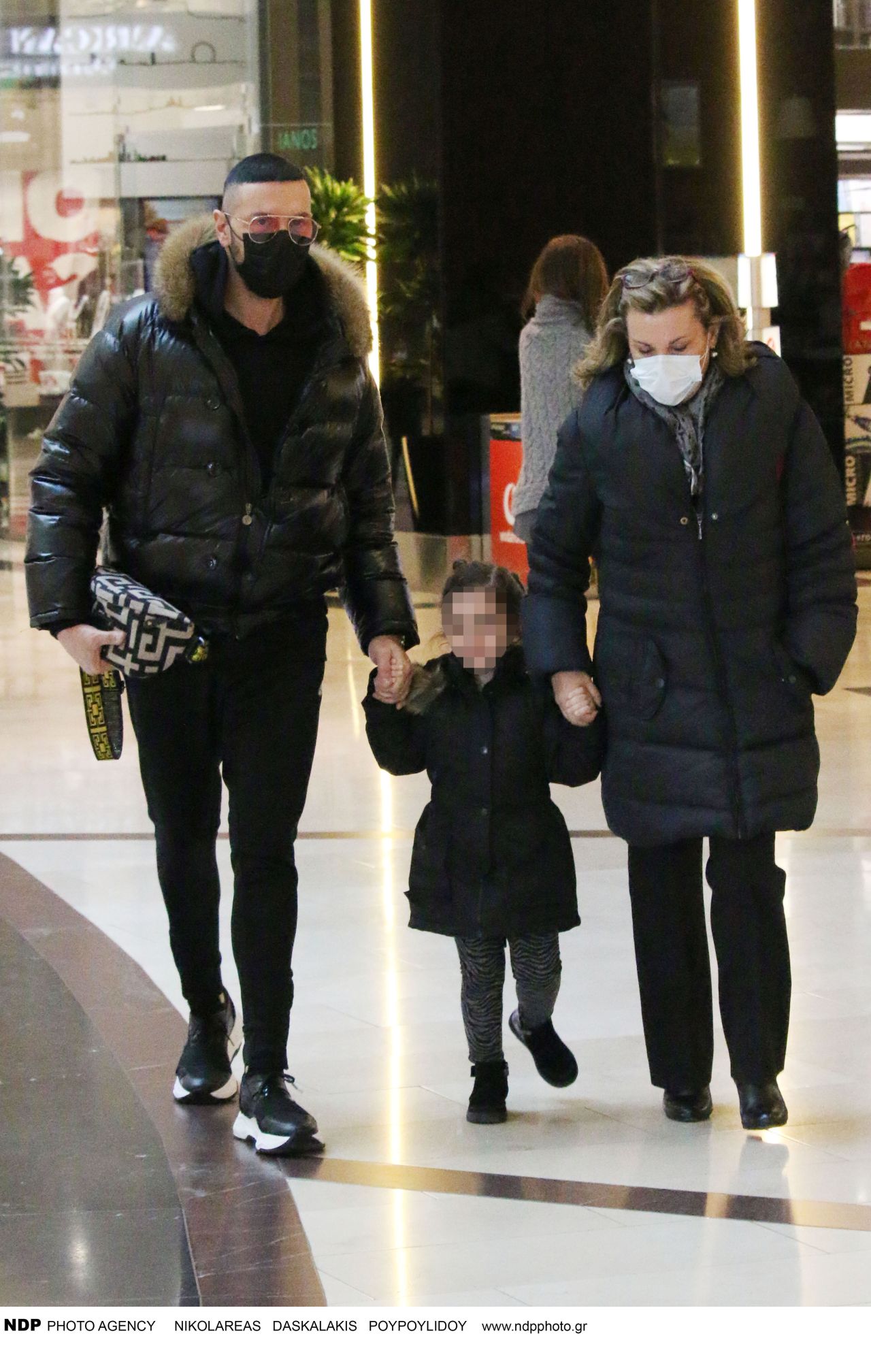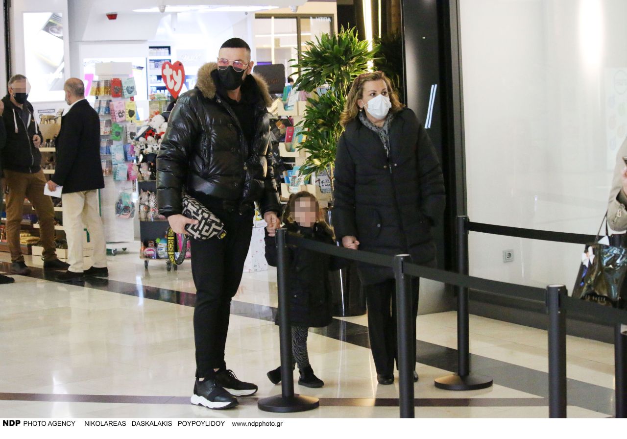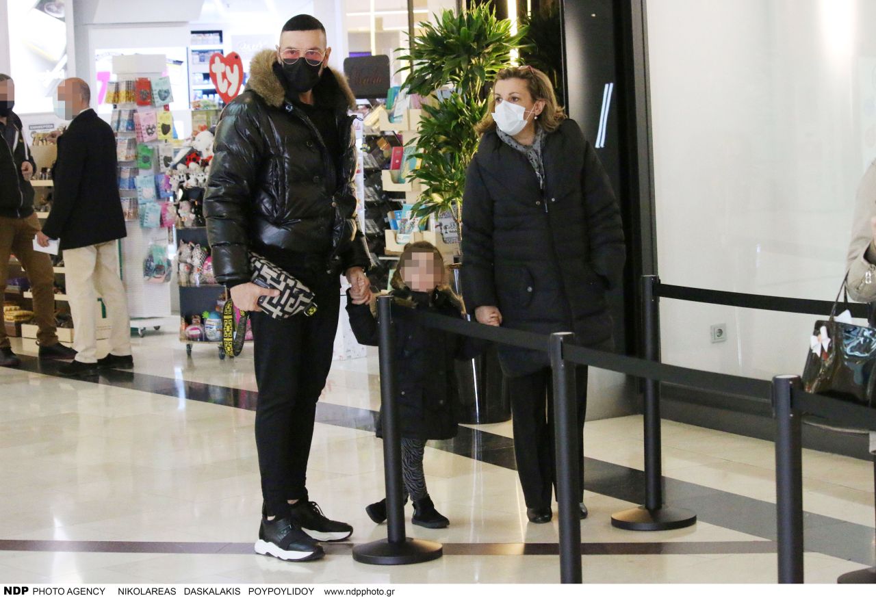 Ο Νίκος Βουρλιώτης στυλάτος, όπως πάντα με ένα φουσκωτό μαύρο μπουφάν και αθλητική φόρμα του ίδιου χρώματος. Δεν άφησε λεπτό το χέρι της κορούλα του, η οποία έχει μεγαλώσει αρκετά και είναι μια κούκλα.