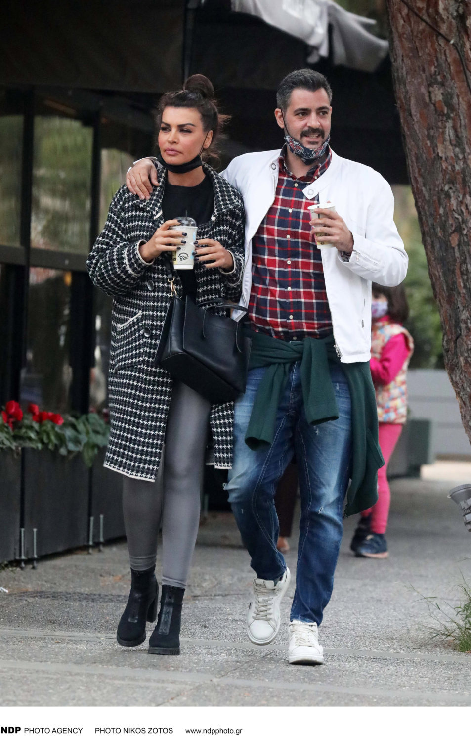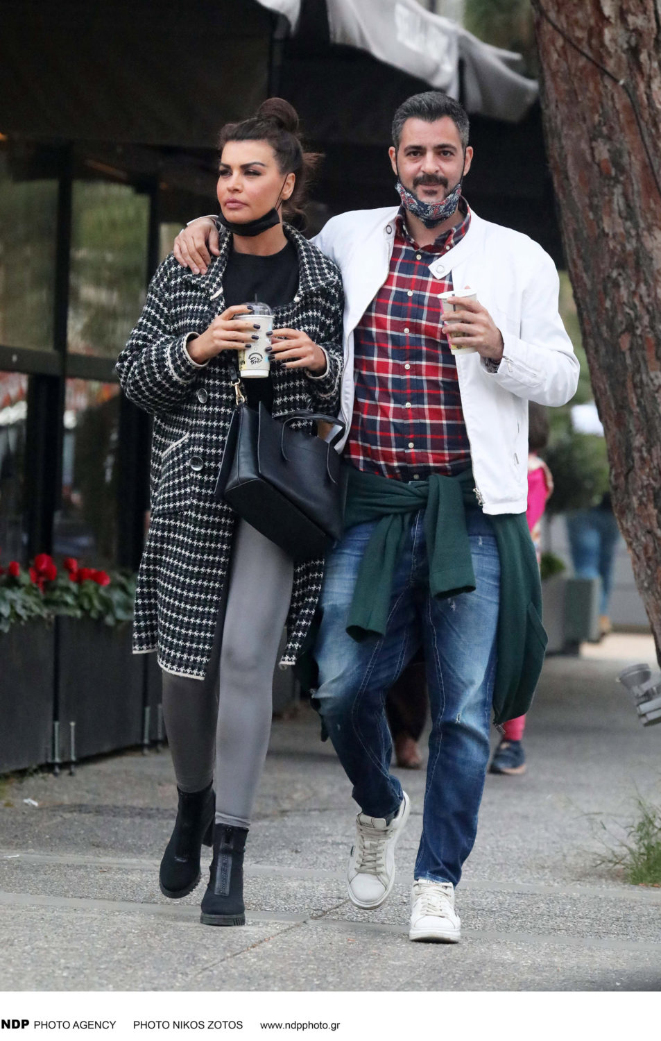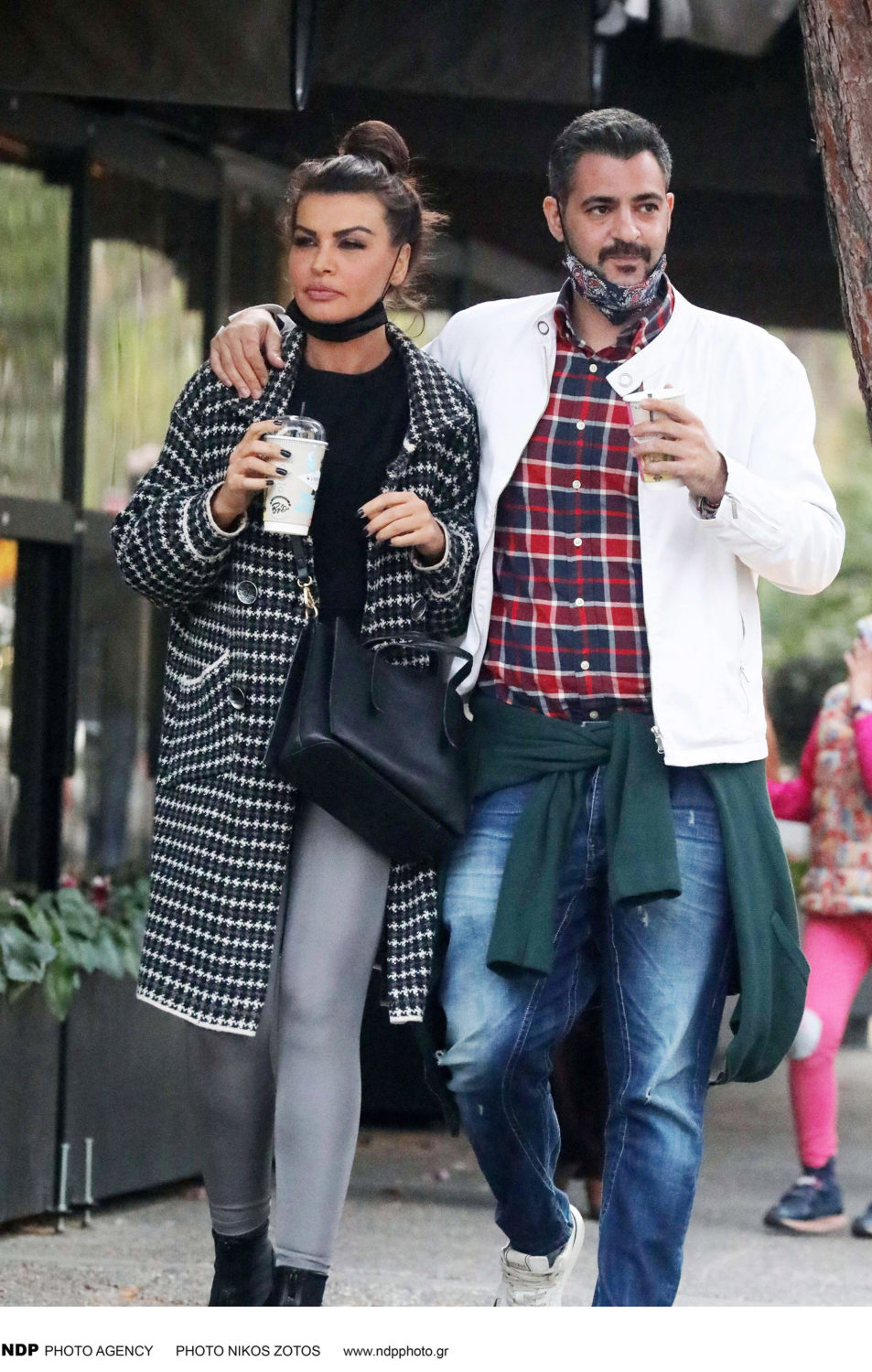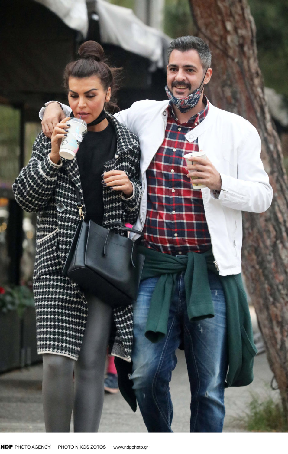 Το ζευγάρι εθεάθη αγκαλιασμένο πριν από λίγες ημέρες να απολαμβάνει με έναν καφέ στο χέρι τη βόλτα του στο κέντρο της Γλυφάδας.