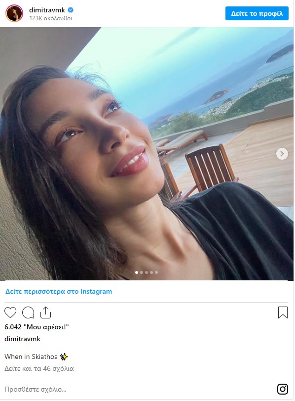 Στη λεζάντα της δημοσίευσής της, η Δήμητρα Βαμβακούση έγραψε: «Όταν.. στη Σκιάθο».
