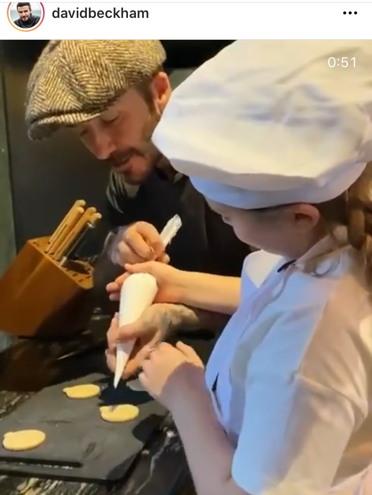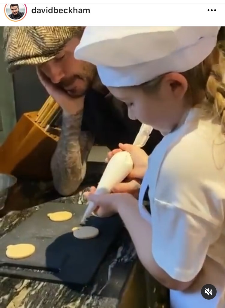 Είναι από τους μπαμπάδες που δεν διστάζουν να τσαλακώσουν την εικόνα τους για χάρη της πριγκίπισσάς τους. Τώρα που οι Μπέκαμ έχουν περισσότερο ελεύθερο χρόνο για να περάσουν μαζί, τον αξιοποιούν όσο μπορούν καλύτερα κάνοντας πολλές δραστηριότητες. Μια από αυτές είναι και τα χριστουγεννιάτικα κουλουράκια της Χάρπερ, στην οποία αρέσει να περνά χρόνο στην κουζίνα παρέα με τον μπαμπά της.