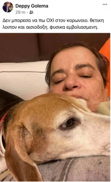 «Δε μπόρεσα να πω όχι στον κορονοϊό. Θετική λοιπόν και αισιόδοξη. Φυσικά εμβολιασμένη» έγραψε χαρακτηριστικά.