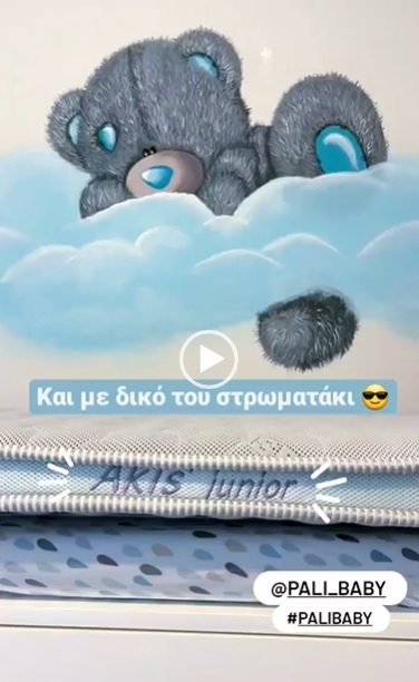 Τα χρώματα που κυριαρχούν είναι το λευκό και το γαλάζιο ενώ έχει και το δικό του στρώμα όπως γράφει.