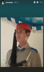 «Κάμποσα χρόνια πριν, όταν κατέφθαναν ορδές τουριστών από τη μακρινή Ασία με σκοπό να επισκεφθούν τον Παρθενώνα κ να τραβήξουν μια αναμνηστική φωτό στο Σύνταγμα για να θυμούνται. Και έπεφταν πάνω σε αυτήν την κλασική αρχαιοελληνική ομορφιά», έγραψε ο Σωτήρης Κοντιζάς, αναρτώντας φωτογραφία του ως Εύζωνα.