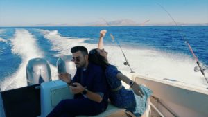 Κατερίνα και ο Κώστας Αντωνιάδης, ο σύμβουλος ψαρέματος, μπαίνουν στην ‘’Εύα’’