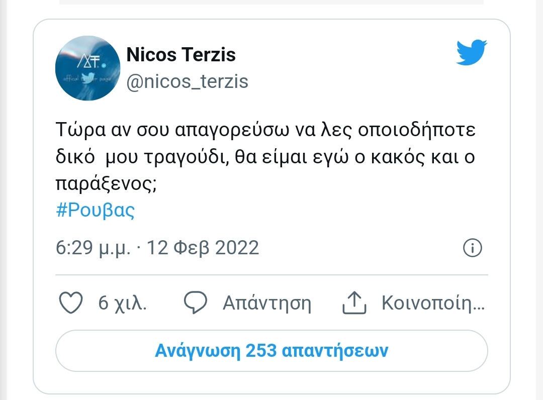 Ο γνωστός συνθέτης Νίκος Τερζής μέσα από τον προσωπικό του λογαριασμό στο Twitter