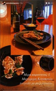 Μέσα από τον προσωπικό του λογαριασμό ανέβασε φωτογραφίες ένα όμορφο πιάτο: «Μέρα καραντίνας 4. Μαγείρεμα. Κοτόπουλο teriyaki με ρύζι jasmine»