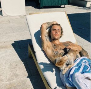 ος σε μια άνετη πολυθρόνα δίπλα στην πισίνα του, παρέα με τον αξιολάτρευτο Όσκαρ, το κουτάβι του. Φορούσε μόνο ένα γκρι σορτς, αποκαλύπτοντας το τατουάζ που καλύπτει το στήθος και τα χέρια του και πόζαρε σοβαρός με τον Όσκαρ στην αγκαλιά του.