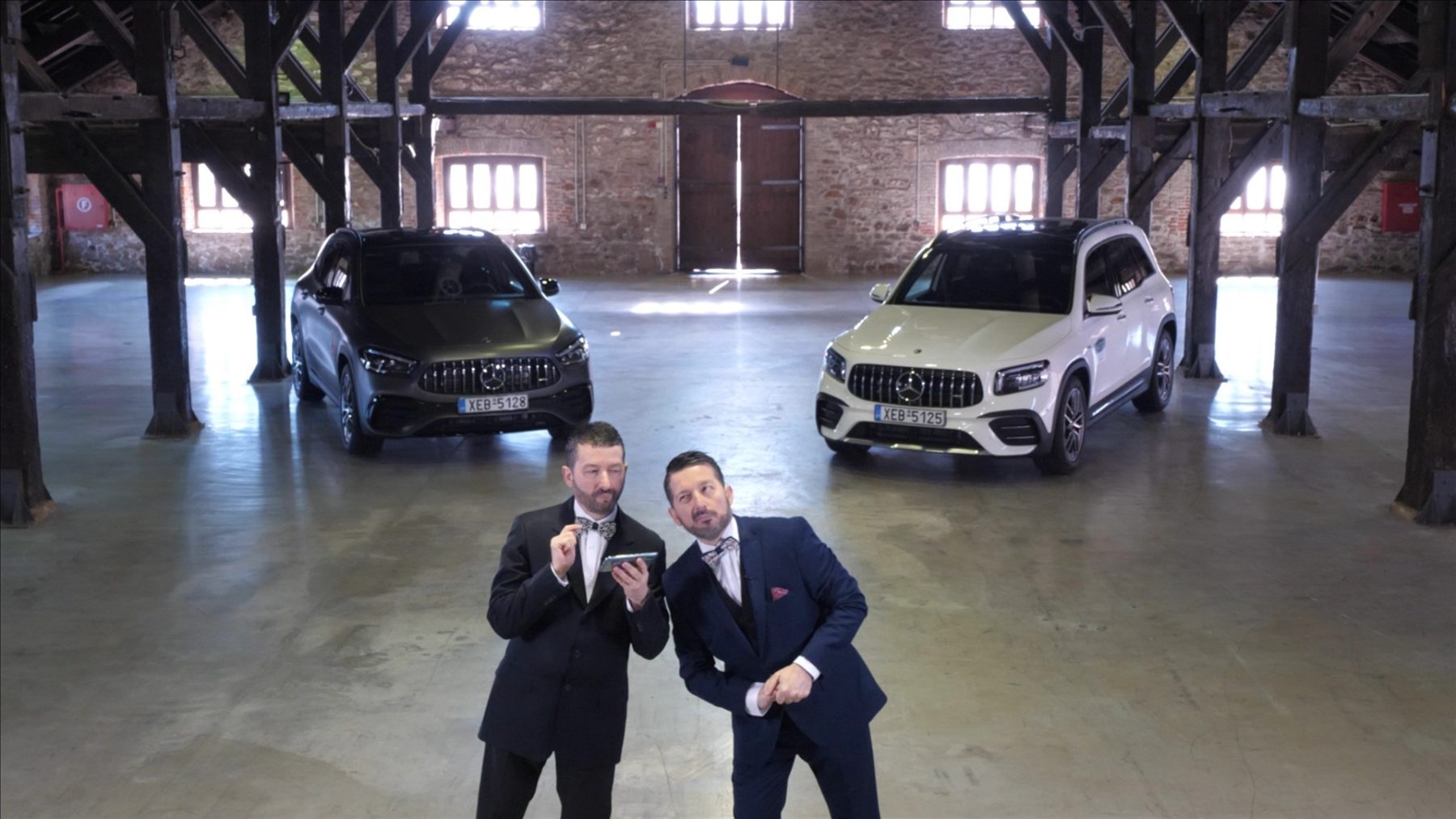 Tο αμίμητο ντουέτο των τενόρων/showmen/κωμικών Duo Fina, υποδέχεται στο TRACTION ο Κώστας Στεφανής, σε πνεύμα… τρελής αποκριάς. Τραγουδώντας και αυτοσχεδιάζοντας, από άριες όπερας μέχρι δημοτικά άσματα, οι δίδυμοι υπερ-ταλαντούχοι τενόροι γνωρίζονται με δύο όχι ακριβώς δίδυμα αλλά οπωσδήποτε χαρισματικά μοντέλα της Mercedes: Την GLA και την GLB 35, αμφότερες στην εξόχως προικισμένη έκδοση AMG. Ξεχωριστοί άνθρωποι, με ιδιαίτερες ικανότητες και, κυρίως, το προσόν να χαρίζουν το δώρο του χαμόγελου με το έργο τους, οι Duo Fina περιεργάζονται με τον δικό τους πρωτότυπο τρόπο, δύο πολύ ελκυστικά οχήματα. Το αποτέλεσμα; Μια μοναδική μουσικό-αυτοκινητική παράσταση!