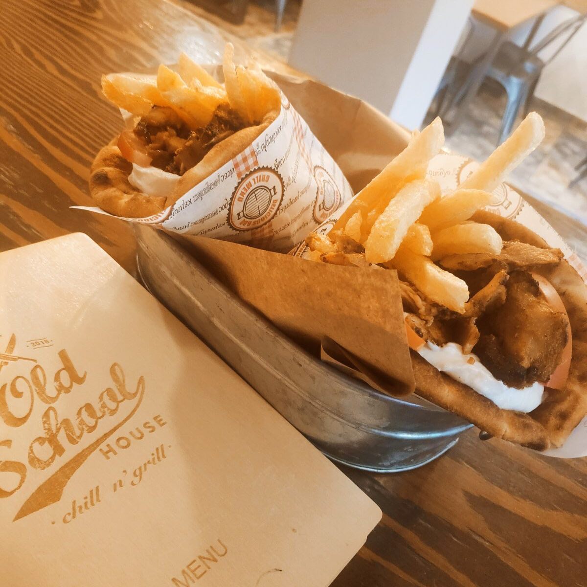 Ψάχνεις το ιδανικό μέρος για να απολαύσεις αυθεντική ελληνική κουζίνα σε μια χαλαρή και φιλική ατμόσφαιρα; Στο Old School House •chill n’grill• σε περιμένουν πεντανόστιμα, χειροποίητα πιάτα, φτιαγμένα με φρέσκα υλικά και μεράκι. Από ζουμερά σουβλάκια και γύρο μέχρι δροσερές σαλάτες και σπιτικό τζατζίκι, οι γενναιόδωρες μερίδες μας θα σε κάνουν να θέλεις… κι άλλο!