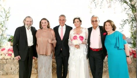 Στο πλευρό της νύφης η μητέρα της Ελένη Κεφαλογιάννη-Βαρδινογιάννη, ο θείος της Γιώργος Βαρδινογιάννης, αλλά και οι δύο της αδελφές, Χριστίνα και Δανάη.