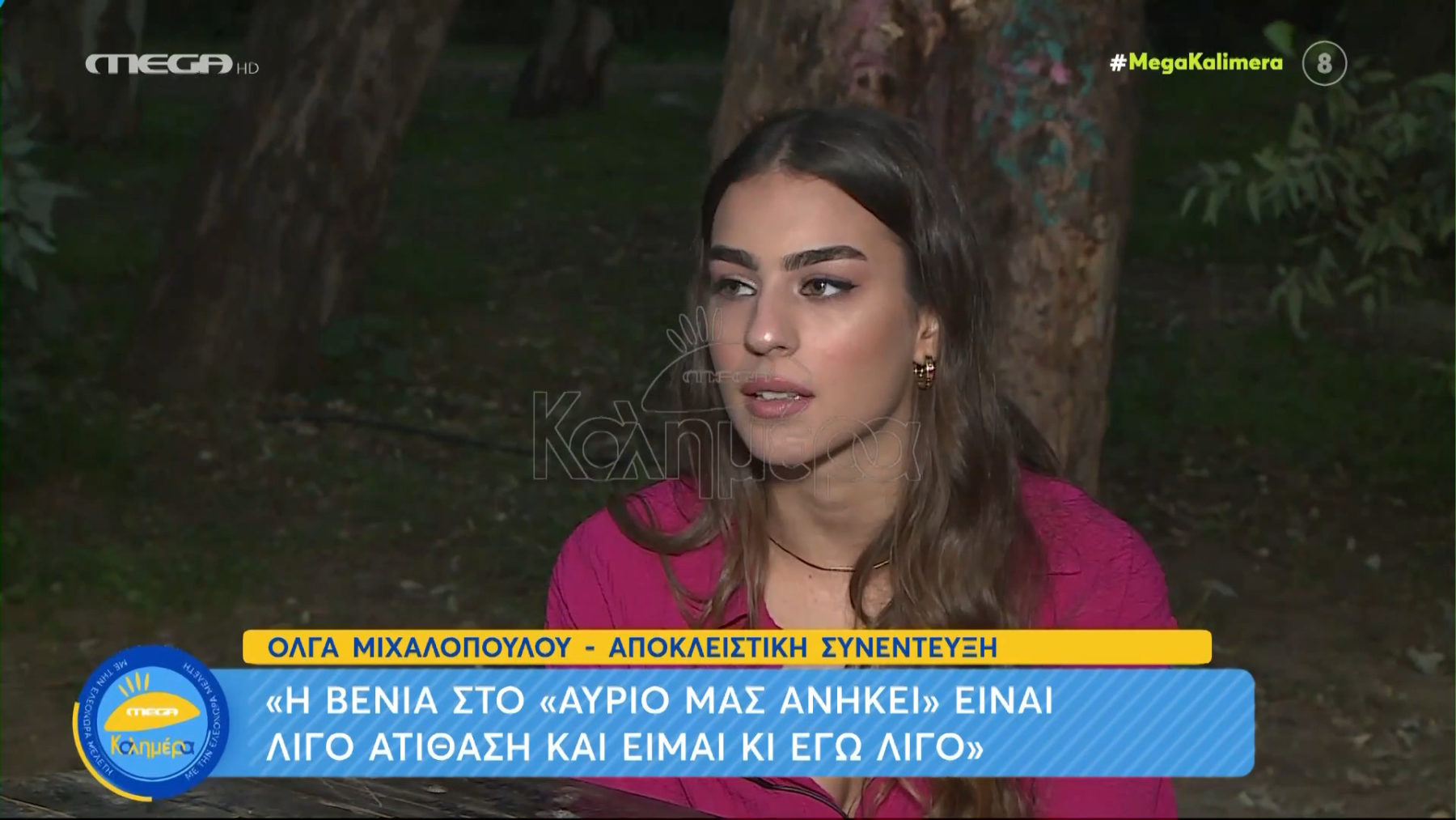 Η Όλγα Μιχαλοπούλου πρωταγωνιστεί φέτος στη σειρά του Mega «Το αύριο μας ανήκει» στον ρόλο της Βένιας. Μίλησε στην κάμερα της εκπομπής Mega Καλημέρα για την υποκριτική, για την αδερφή της με την οποία μοιάζουν σαν δυο σταγόνες νερό και την σχέση της με τον κριτή του MasterChef.