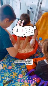 Ευτυχισμένη και περήφανη μαμά είναι η Ολυμπία Χοψονίδου βλέποντας τα παιδιά της να φτιάχνουν πασχαλινά τσουρέκια.