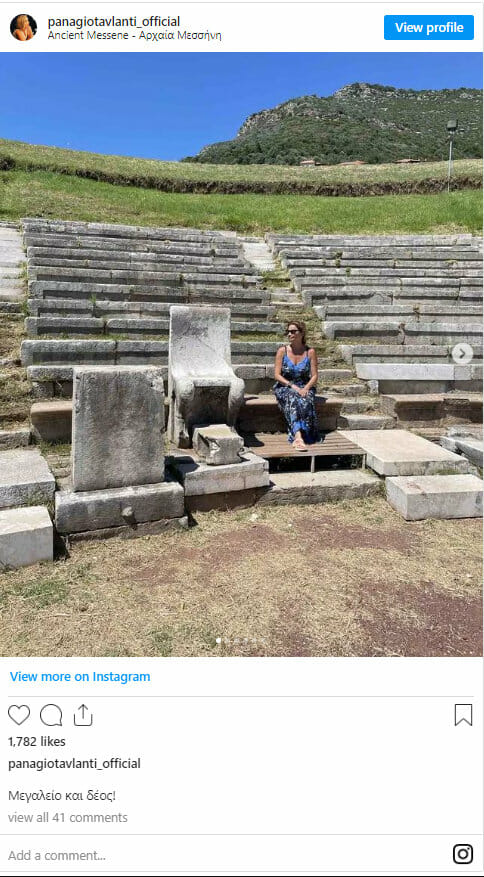 Παράλληλα, η Βλαντή «ανέβασε» και μία ακόμη σειρά φωτογραφιών, αυτή τη φορά από την Αρχαία Μεσσήνη: «Μεγαλείο και δέος», ανέφερε στη λεζάντα της.