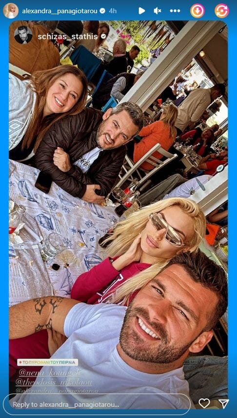 Η influencer Αλεξάνδρα Παναγιώταρου και ο σύντροφό της, Στάθης Σχίζας πραγματοποίησαν έξοδο στον Πειραιά και επισκέφτηκαν εστιατόριο μαζί με καλούς τους φίλους.