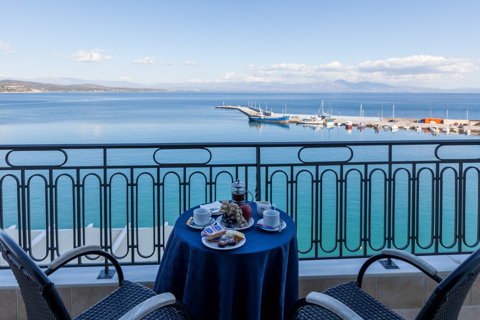 Τα Pastel χρώματα, τα χειροποίητα έπιπλα και η κομψή διακόσμηση, σε συνδυασμό με τη μοναδική θέα γαλάζιο της θάλασσας, κάνουν το ξενοδοχείο ΠΑΝΘΕΟΝ ένα από τα κορυφαία στο Γύθειο.