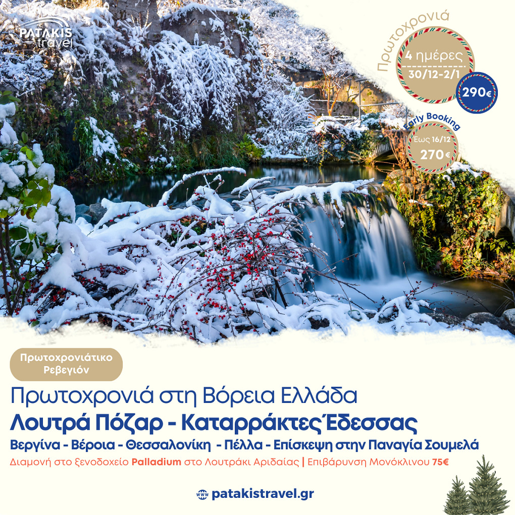 Περιηγηθείτε στις εκδρομές που σχεδιάσαμε για εσάς και αν δυσκολευτείτε να διαλέξετε, καλέστε μας και μαζί θα καταλήξουμε σε αυτή που θα είναι το πολυτιμότερο δώρο της φετινής χρονιάς, αλλά και ο ιδανικός τρόπος για να ξεκινήσει η νέα με τις ωραιότερες προοπτικές και την καλύτερη διάθεση!