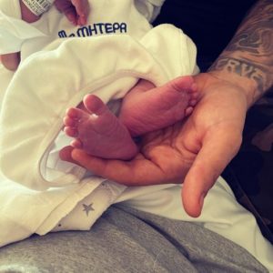 Εγραψε στην λεζάντα που συνόδευε την φωτογραφία με τα πατουσάκια του μωρού στα χέρια του.