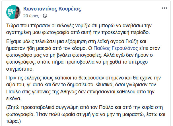 Με σπουδές στο Χάρβαρντ και με ανοιχτό μυαλό, εξάλλου έχει ταξιδέψει πάρα πολύ και λόγω δουλειάς διευρύνοντας τους ορίζοντές του, κρατάει παράλληλα τον ανθρωπισμό, την ουμανιστική του πλευρά μακριά απ’ τις επάλξεις και τα φλας. Ένας λόγος παραπάνω που χάρηκα τρομερά όταν η συνάδελφος και αγαπημένη απ’ τα χρόνια τα παλιά, απ’ το ’96 για την ακρίβεια, Χριστίνα Πολίτη ήταν στο ψηφοδέλτιό του σε αυτές τις εκλογές – και ανεξάρτητα απ’ το ότι πρόσκειμαι σε διαφορετική παράταξη.