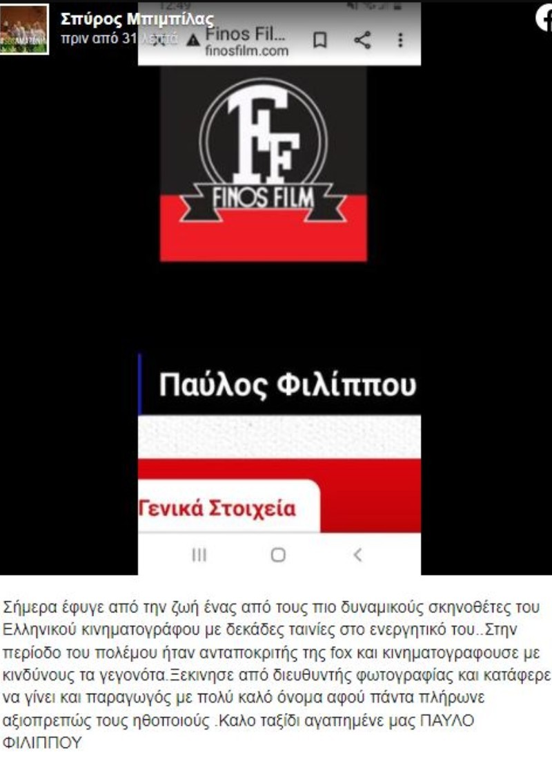 Καλό ταξίδι αγαπημένε μας ΠΑΥΛΟ ΦΙΛΙΠΠΟΥ».