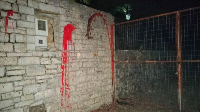 Οι αντιεξουσιαστές έγραψαν συνθήματα στους τοίχους της εξοχικής κατοικίας και πέταξαν κόκκινο χρώμα.