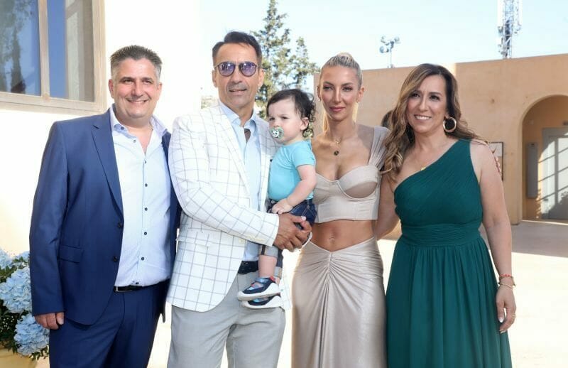 Οι γονείς του μικρού Παναγιώτη έλαμπαν από ευτυχία στη σημαντική για αυτούς ημέρα. Ανάμεσα στους λαμπερούς καλεσμένους της βάφτισης ήταν η Άντζελα Δημητρίου. Αλλά και ο Τριαντάφυλλος με τη σύζυγό του, Δήμητρα και ο Σταμάτης Γονίδης με τη σύζυγό του Κατερίνα Κουργιουξίδου.