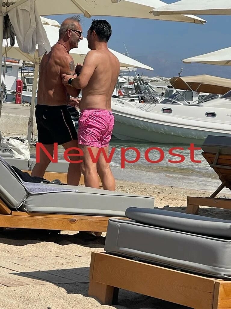 Ο Κωστόπουλος και η κόρη του απαθανατίστηκαν σε πολυσύχναστη παραλία της Μυκόνου.
