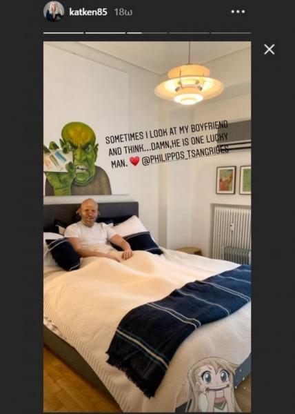Είναι από τις σπάνιες φορές που η Κατερίνα Καινούργιου κάνει αποκαλύψεις προσωπικών στιγμών με το αγόρι της, τον Φίλιππο Τσαγκρίδη Παναγόπουλο. Πόσο μάλιστα τώρα εν μέσω καραντίνας που το ζευγάρι περνάει πολλές ώρες της καθημερινότητας μαζί. Πρόσφατα όμως, Η οικοδέσποινα της εκπομπής «Ευτυχείτε» μοιράστηκε με τους followers της στιγμιότυπα από την καθημερινότητά της με τον σύντροφό της. Το Σαββατοκύριακο η ξανθιά παρουσιάστρια του Open έκανε μια εξαίρεση στον κανόνα να μη δημοσιεύει προσωπικές στιγμές και ανέβασε δύο stories του αγαπημένου της στο Instagram. Στο πρώτο ο Φίλιππος είναι ξαπλωμένος στο κρεβάτι με μια μάσκα… τέρατος στο πρόσωπο, την οποία πρόσθεσε η Κατερίνα με τη βοήθεια της τεχνολογίας. «Μερικές φορές κοιτάω τον σύντροφό μου και σκέφτομαι… Είναι ένας πολύ τυχερός άντρας!» σχολίασε η ίδια στη λεζάντα. Την περασμένη εβδομάδα, όταν η παρουσιάστρια επέστρεψε στη μικρή οθόνη έπειτα από ένα μικρό break λόγω κορωνοϊού, αποκάλυψε στον αέρα της εκπομπής της πως αυτές τις ημέρες μένει μαζί με τον αγαπημένο της Φίλιππο για να μην είναι μόνη της. Το ζευγάρι έχει συμπληρώσει έναν χρόνο κοινής πορείας, αλλά οι δυο τους έχουν αποφασίσει να διαφυλάττουν όσο μπορούν τη σχέση τους από τη δημοσιότητα και κανένας τους δεν δημοσιοποιεί κοινές φωτογραφίες τους. Φαίνεται, ωστόσο, πως ο κανόνας αυτός έχει αρχίσει να έχει εξαιρέσεις…