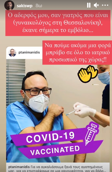 Πρόκειται για τον αδερφό του, Παναγιώτη, ο οποίος ανήκει στο ιατρικό προσωπικό της χώρας, καθώς είναι γυναικολόγος στη Θεσσαλονίκη και μάλιστα ο Σάκης ανέβασε φωτογραφία από τη στιγμή του εμβολιασμού, δίνοντας ξανά συγχαρητήρια για την προσφορά όλου του ιατρικού προσωπικού στον καιρό της πανδημίας.