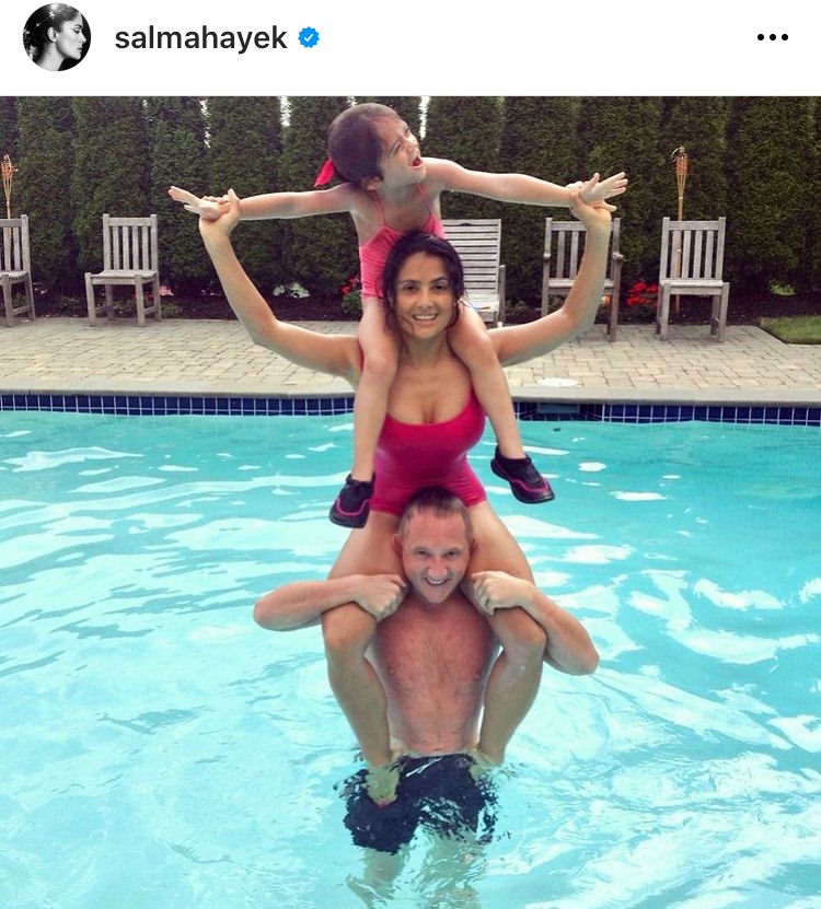 Η Σάλμα Χάγιεκ δημοσίευσε μια οικογενειακή φωτογραφία στο Instagram από την πισίνα του σπιτιού της, όπου η ίδια και η κόρη της Βαλεντίνα- Παλόμα έχουν ανέβει στους ώμους του άντρα της, Φρανσουά-Ανρί Πινό. Η μεξικανή ηθοποιός αφιέρωσε την ανάρτηση της στον σύζυγό της, εκφράζοντας την αγάπη της και σημειώνοντας:«Ποτέ, ούτε στα πιο μεγάλα μου όνειρα δεν μπορούσα να φανταστώ ότι θα μοιραζόμουν τη ζωή μου με έναν τόσο υπέροχο κι εξαιρετικό άντρα. Είσαι η δύναμή μας, είσαι η έμπνευσή μας, είσαι το σπίτι μας».
