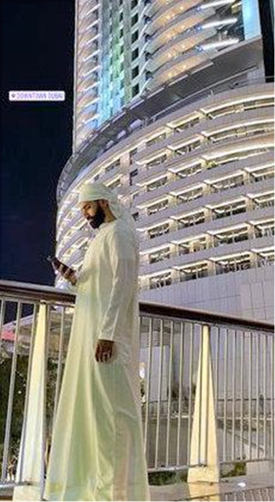 Μάλιστα, όχι μόνο απολαμβάνει τις ομορφιές του Εμιράτου αλλά έχει εναρμονιστεί πλήρως με το περιβάλλον, φορώντας κελεμπία. Κάτι που φυσικά άλλαξε πλήρως την εξωτερική του εμφάνιση. Τόσο που πλέον είναι αγνώριστος.