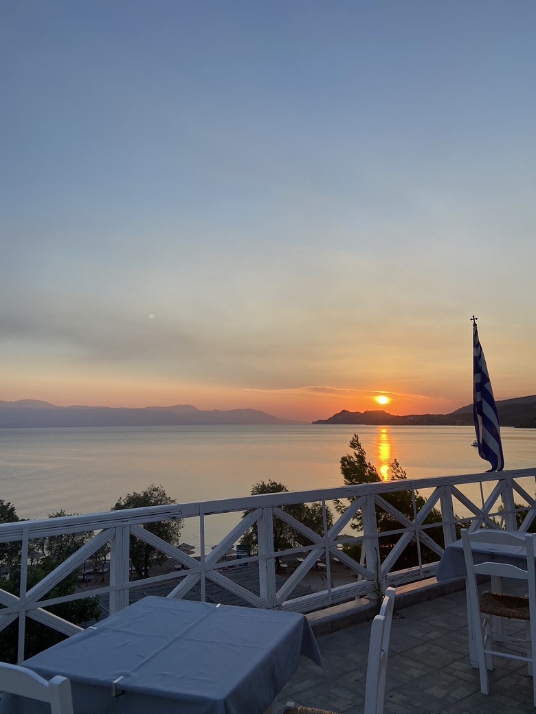 Πιάστε τραπέζι στο υπέροχο μπαλκόνι του και με θέα τον Κορινθιακό απολαύστε φρέσκα ψάρια και θαλασσινά, παραδοσιακή κουζίνα και κρεατικά φτιαγμένα με τα πιο φρέσκα υλικά. Η ώρα του ηλιοβασιλέματος είναι μοναδική.