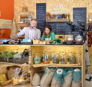 ένα μεγάλο υπόγειο κατάστημα με βότανα και μπαχαρικά.