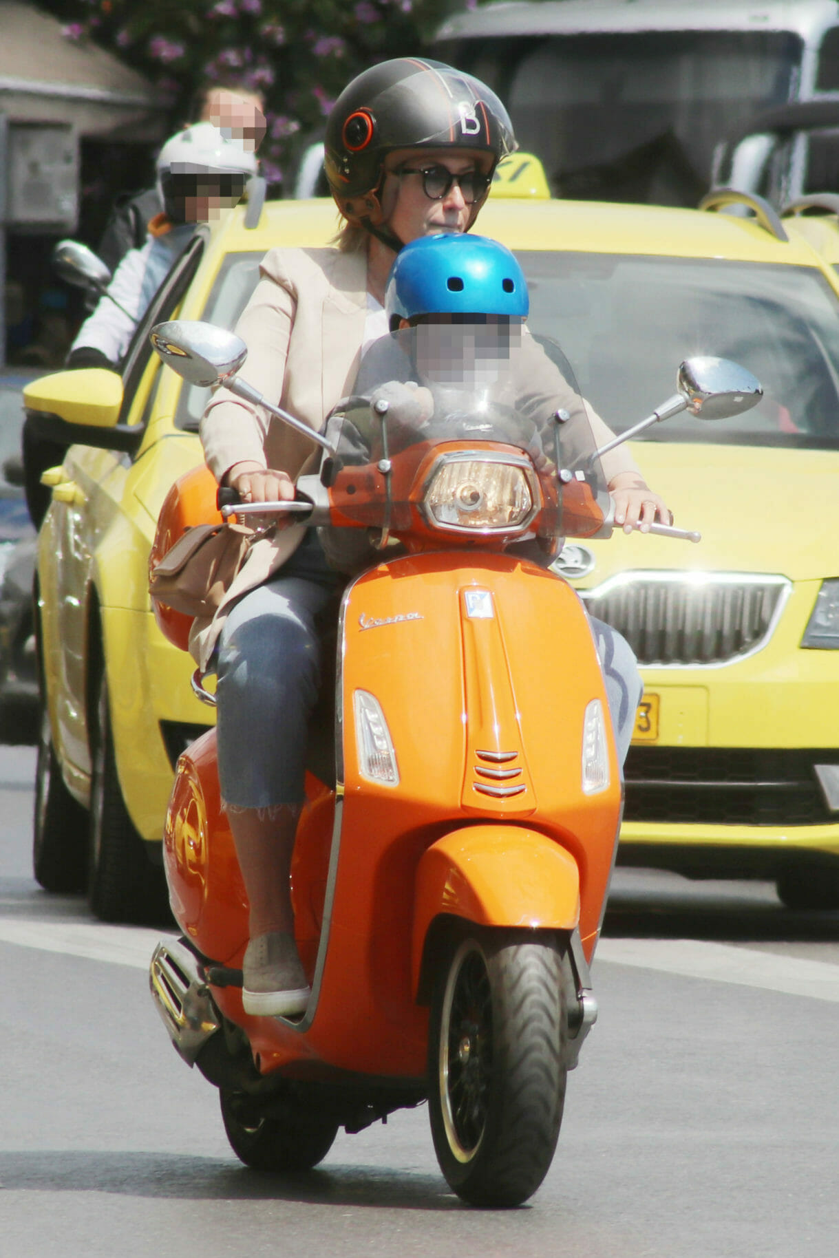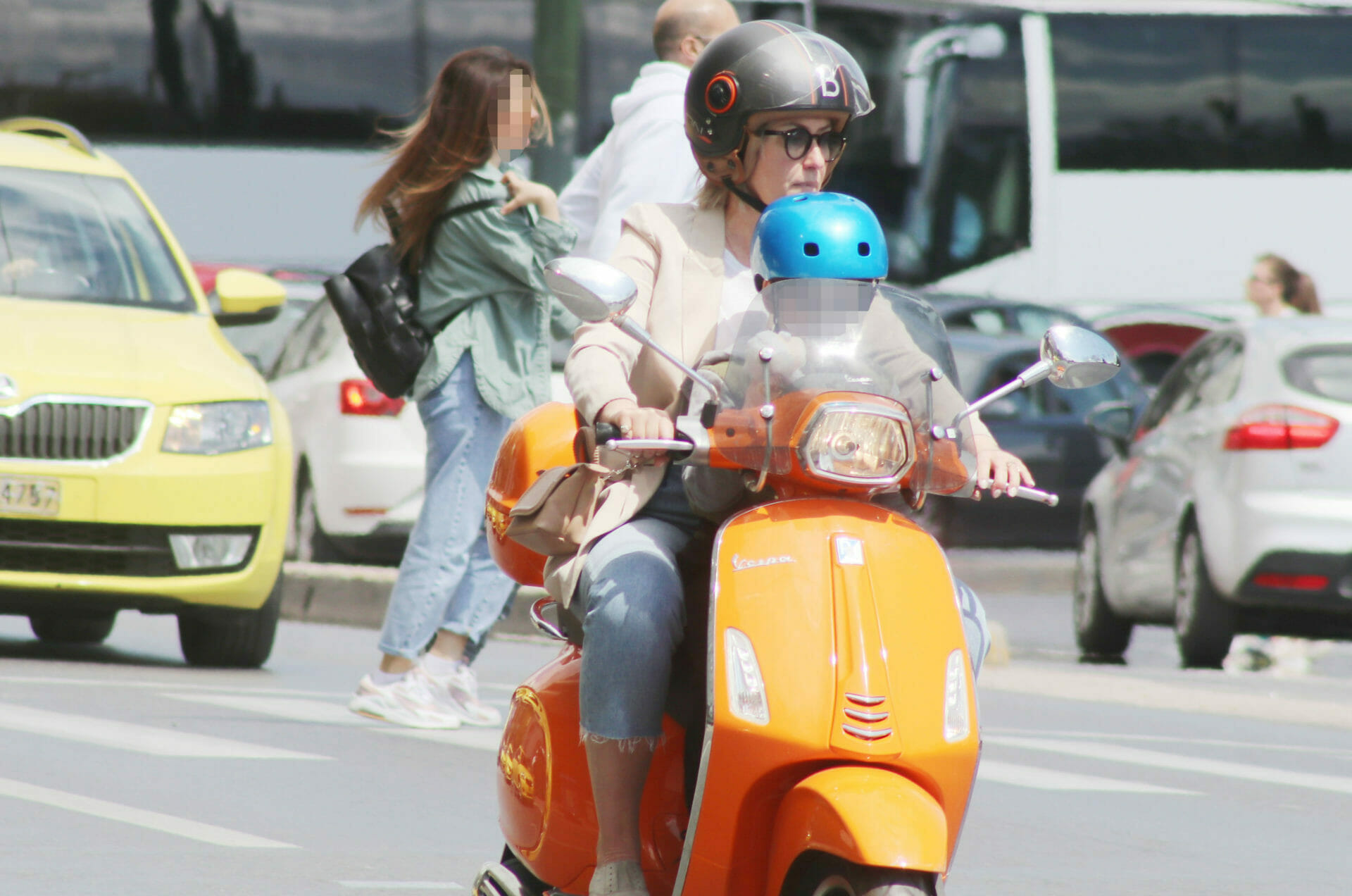 Η κεντρική παρουσιάστρια του δελτίου ειδήσεων του ΣΚΑΪ, απαθανατίστηκε από τον φωτογραφικό φακό πάνω στο μηχανάκι της μαζί με τον γιο της.