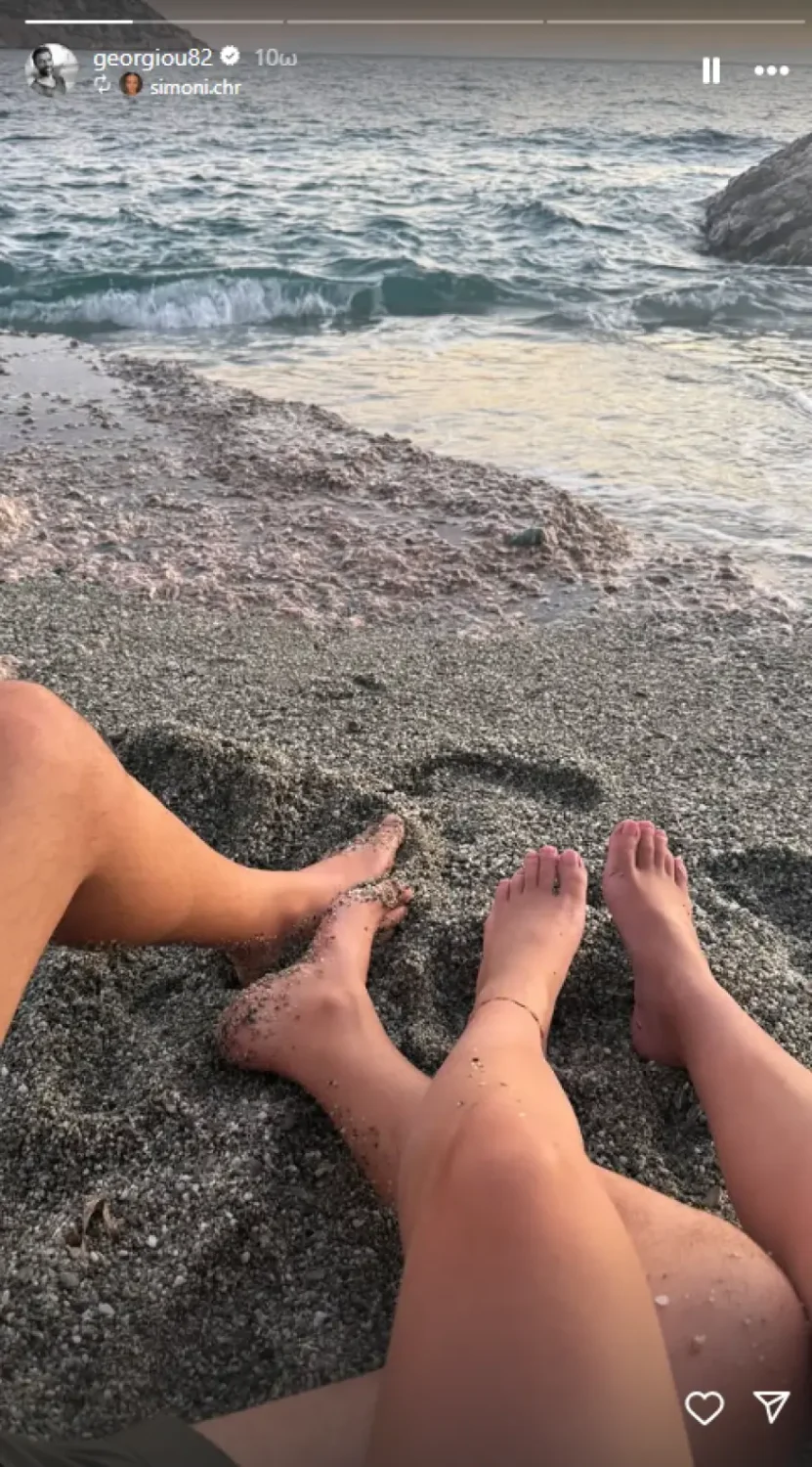 Η Σιμώνη Χριστοδούλου δημοσίευσε και εκείνη μια εικόνα από την παραλία με τον Ανδρέα Γεωργίου, φωτογραφίζοντας τα πόδια τους στην άμμο.