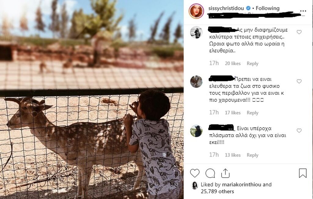 Ωστόσο πολλοί φιλόζωοι, εκνευρίστηκαν με αυτή την ανάρτηση και με σχόλιά τους τονίζουν πως δεν πρέπει να υπάρχουν ζωολογικοί κήποι, πως τα ζώα πρέπει να ζουν ελεύθερα στη φύση και την κατηγορούν που… διαφημίζει μια τέτοια επιχείρηση. Έτσι είναι Σίσσυ μου, τα ακούς και τα ακούνε όσοι προβαίνουν σε αναρτήσεις «επίφοβες».