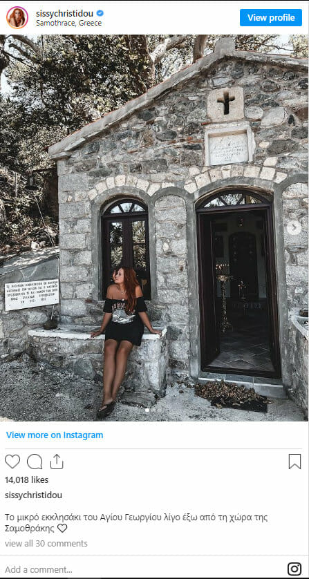 «Το μικρό εκκλησάκι του Αγίου Γεωργίου λίγο έξω από τη χώρα της Σαμοθράκης», ανέφερε η Χρηστίδου δημοσιεύοντας φωτογραφίες από την περιοχή.