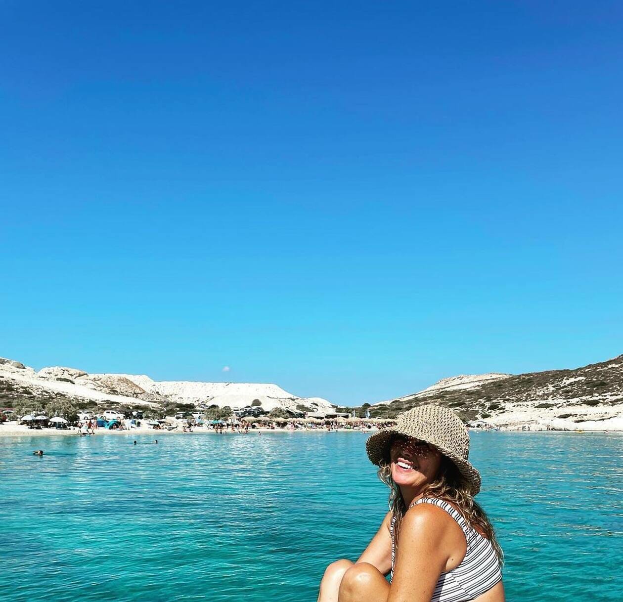 Η Σοφία Αλιμπέρτη άφησε για λίγο τον επίγειο παράδεισό της, την Πάρο και απόλαυσε τις βουτιές της στην Πολύαιγο.