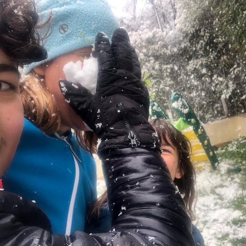 Μάλιστα, όπως θα δείτε στη φωτογραφία που ανέβασε στο Instagram, δέχτηκε και μια χιονόμπαλα στο πρόσωπο.