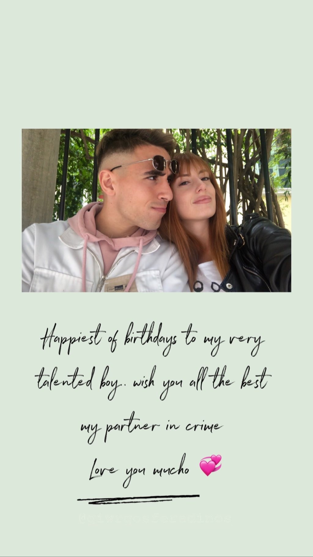 Πριν από ένα μήνα, πάντως, γιατί καλές οι φήμες, αλλά πρέπει να βλέπουμε τα πάντα όλα, εκείνη διατράνωνε πως ήταν ζευγάρι με τον Γιώργο Φερεντίνο- ποδοσφαιριστή, που τη φετινή σεζόν αγωνιζόταν με την φανέλα του Χαραυγιακού, στην Γ’ Εθνική. Ο νεαρός ποδοσφαιριστής, που λέτε, είχε τα γενέθλια του και το μοντέλο θέλησε να του ευχηθεί δημόσια με ένα τρυφερό μήνυμα στο Instagram. «Χαρούμενα γενέθλια στο ταλαντούχο αγόρι. Εύχομαι τα καλύτερα στο άλλο μισό μου. Σ’ αγαπώ πολύ», έγραψε χαρακτηριστικά.