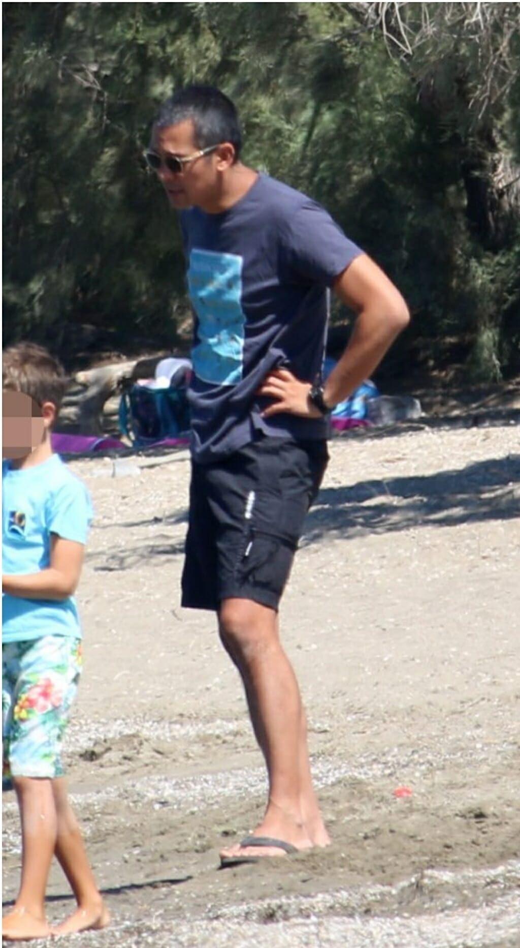 Ο φωτογραφικός φακός, τον απαθανάτισε μαζί με τη σύζυγό του, Δέσποινα και τα τρία τους παιδιά να απολαμβάνουν παιχνίδια στη θάλασσα.