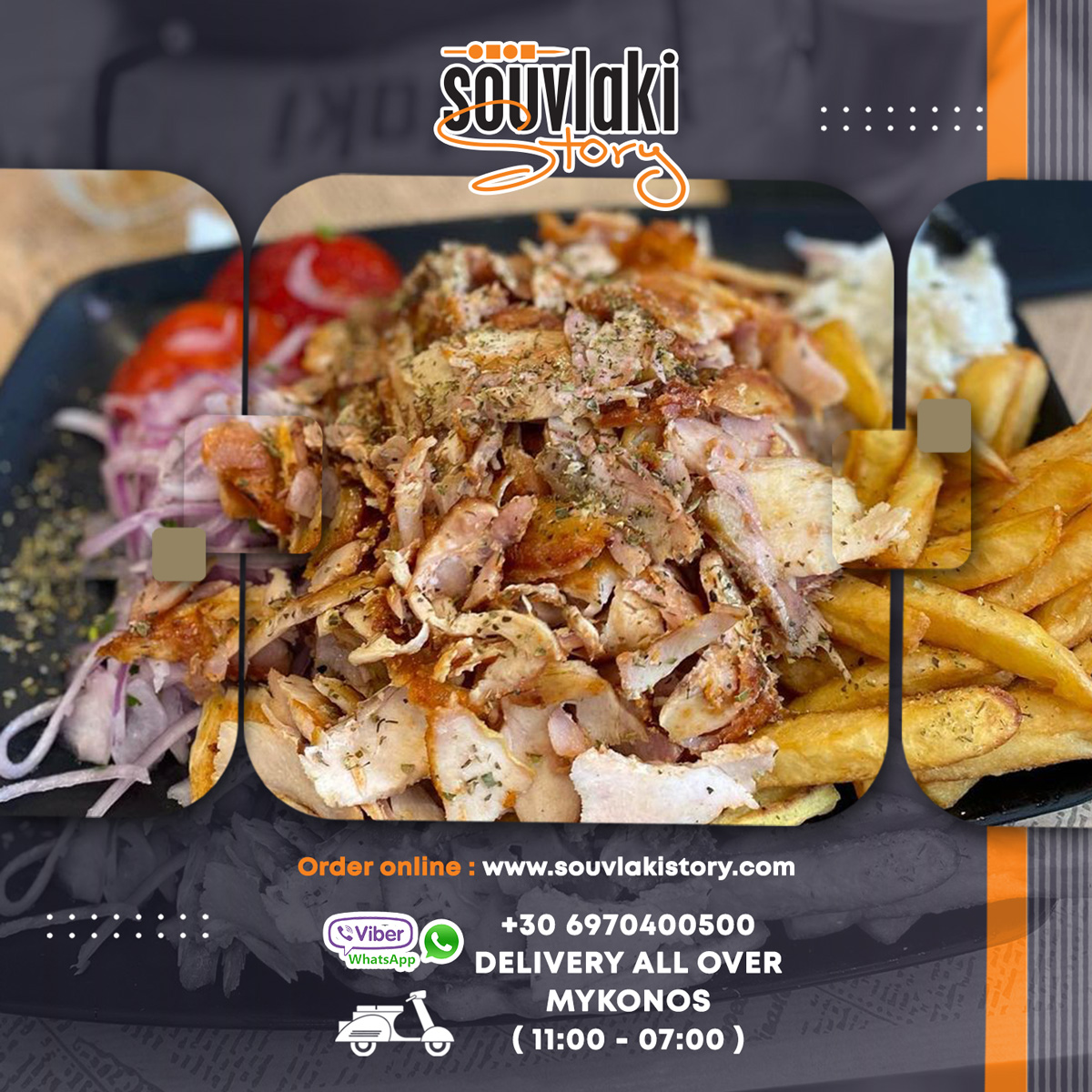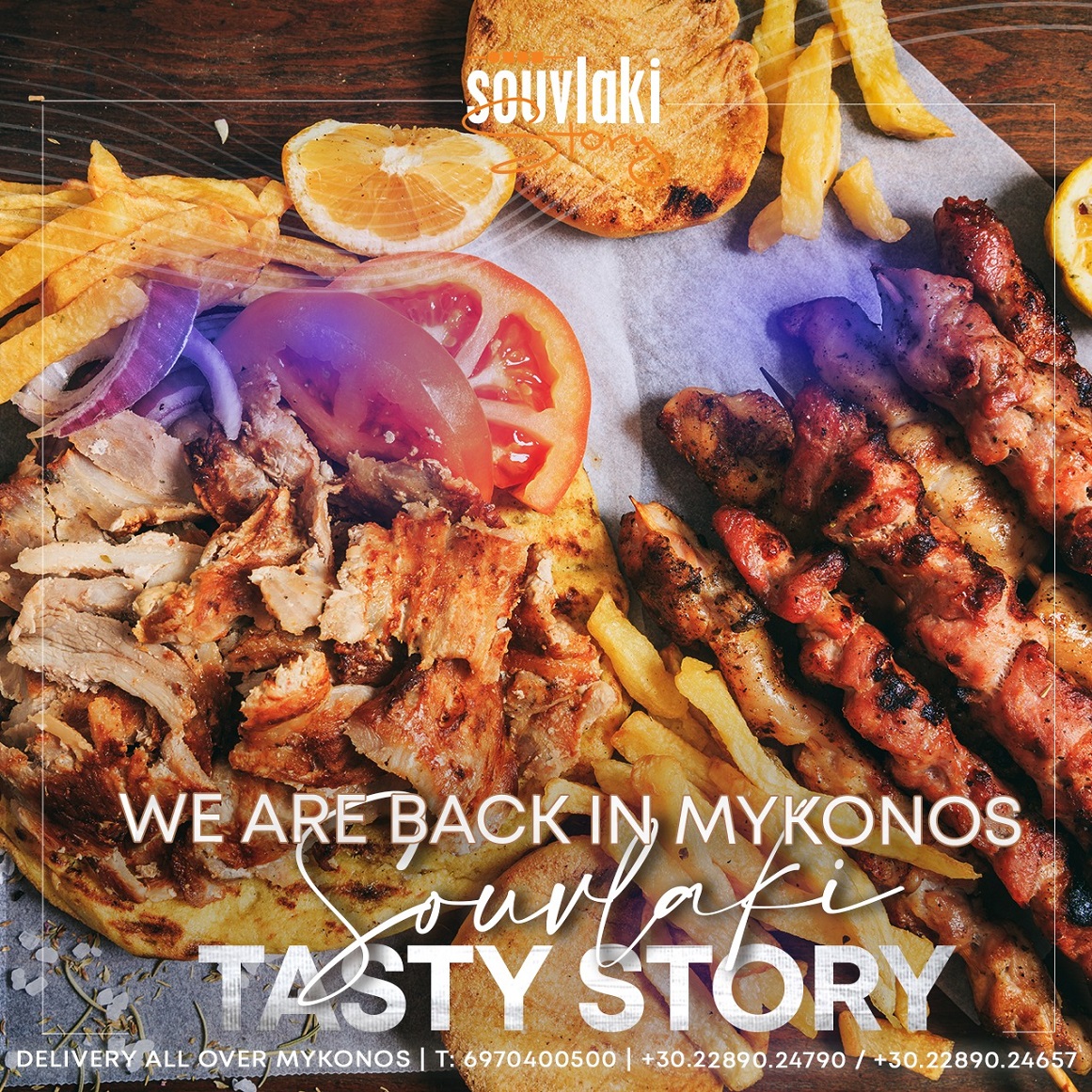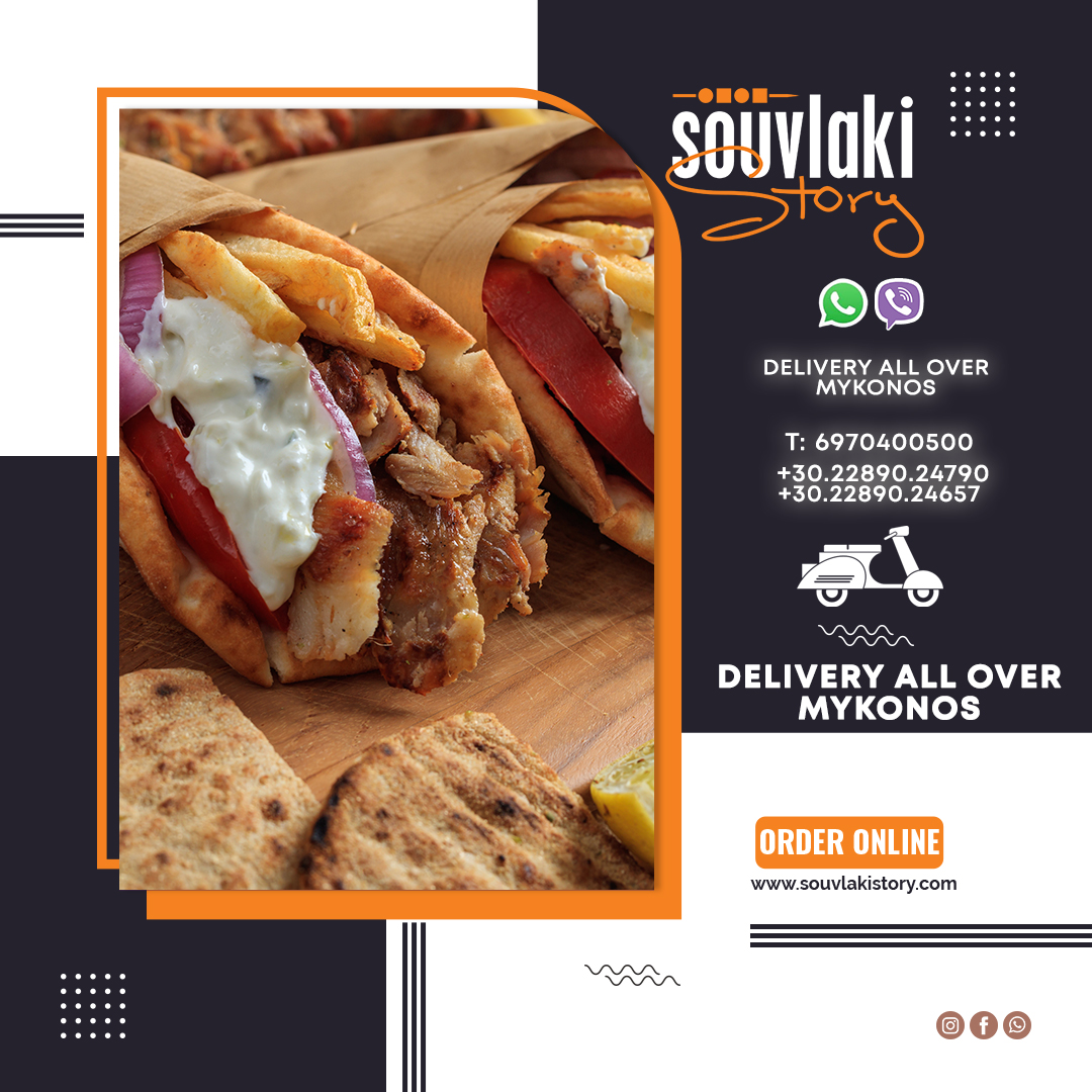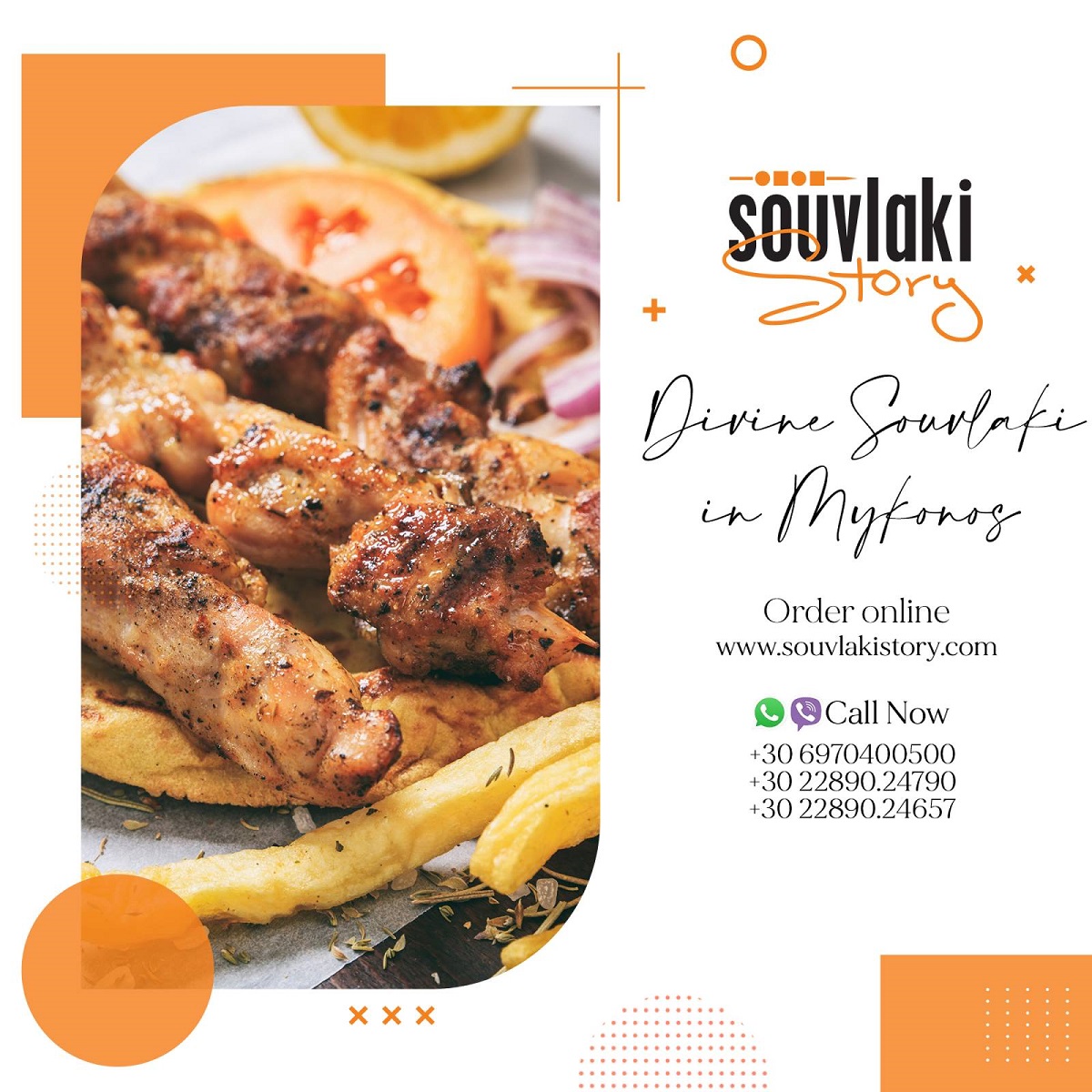 Στο Souvlaki Story, αναδεικνύεται η ελληνική κουζίνα με τα πιο λαχταριστά σουβλάκια και γύρους. Από το παραδοσιακό χοιρινό και κοτόπουλο σουβλάκι μέχρι τις χορτοφαγικές επιλογές με ψητό χαλούμι και φαλάφελ, το μενού καλύπτει κάθε γευστική επιθυμία. Ο υπαίθριος χώρος προσφέρει εκπληκτική θέα στη Μύκονο, δημιουργώντας μια μοναδική ατμόσφαιρα για εσάς και την παρέα σας. Απολαύστε τη γεύση της παράδοσης κάτω από τον ήλιο του Αιγαίου ή τον φωτεινό αστέρια ουρανό της νύχτας.