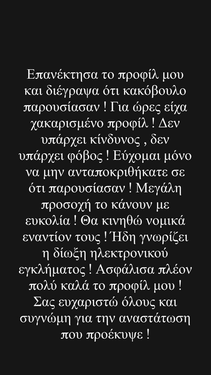 Ο Μαρτίκας έγραψε σε ανάρτησή του: «Επανέκτησα το προφίλ μου και διέγραψα ότι κακόβουλο παρουσίασαν!