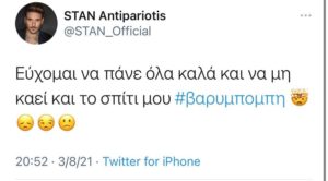 O STAN έγραψε στον προσωπικό του λογαριασμό στο Twitter: