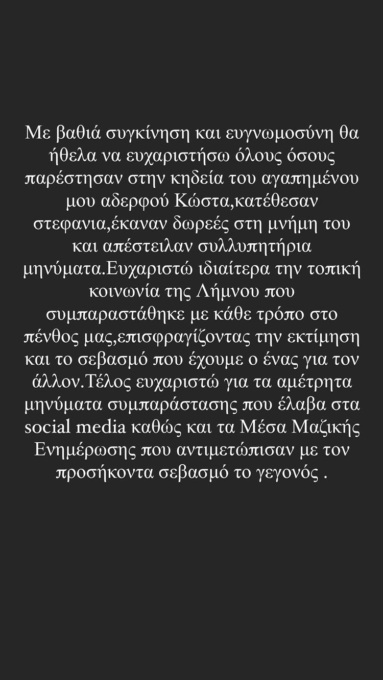 Προκειμένου να ευχαριστήσει όλους όσους συμπαραστάθηκαν στο πένθος του…