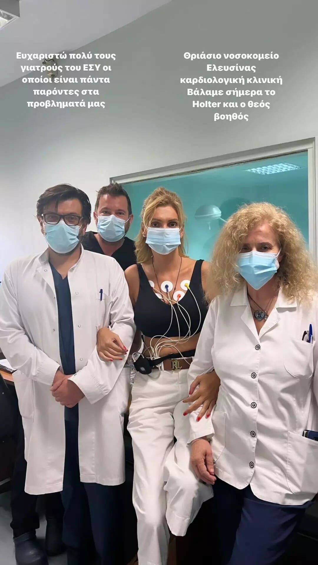 «Ευχαριστώ πολύ τους γιατρούς του ΕΣΥ οι οποίοι είναι πάντα παρόντες στα προβλήματά μας… Βάλαμε σήμερα το Holter και ο Θεός βοηθός» έγραψε η Σάσα Σταμάτη στην ανάρτηση που έκανε μέσα από το νοσοκομείο μαζί ποζάροντας μαζί με το ιατρικό προσωπικό.