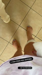 Η γνωστή ηθοποιός μέσα από τον προσωπικό της λογαριασμό στο instagram αναφέρθηκε το ατύχημα που είχε περπατώντας στα πεζοδρόμια των Εξαρχείων.